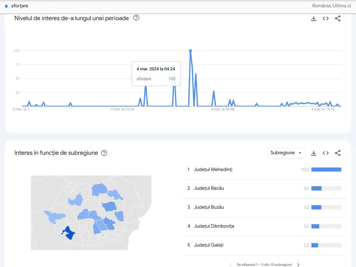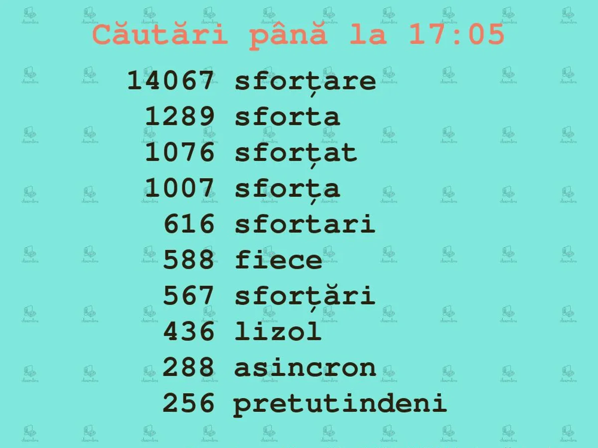 Cum tot românul știe că cine se scoală de dimineață departe ajunge, căutările termenului „sforțare” au început imediat după miezul nopții, până la ora începerii examenului, depășindu-se media zilnică a ultimelor luni. Între 9 și 11 au fost aproape 300 de căutări!