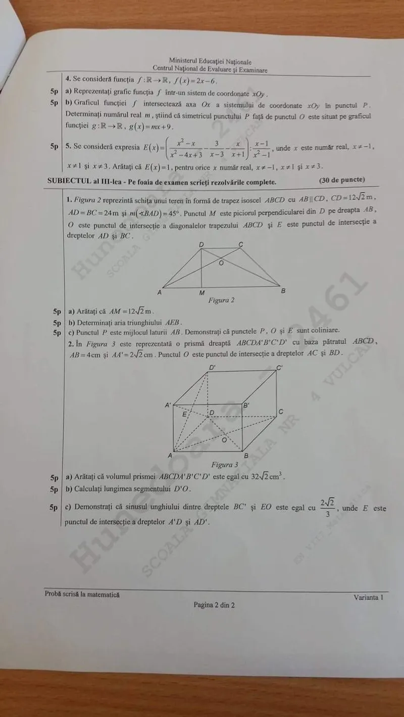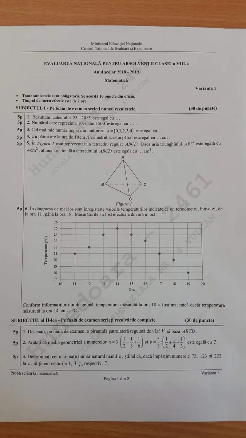 Ce exerciţii au primit elevii la examenul de matematică la Evaluarea Națională