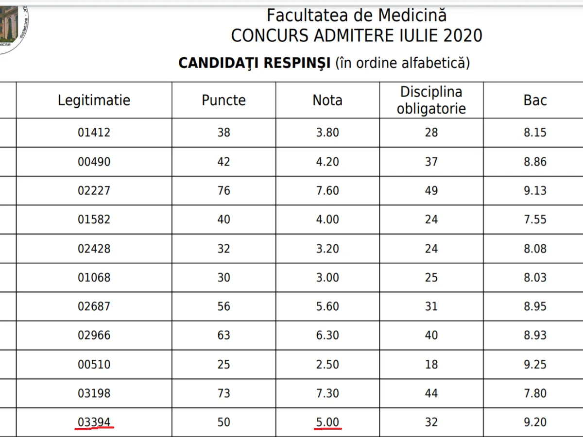 Elevul cu codul 03394 declarat respins cu nota 5 la admitere:
