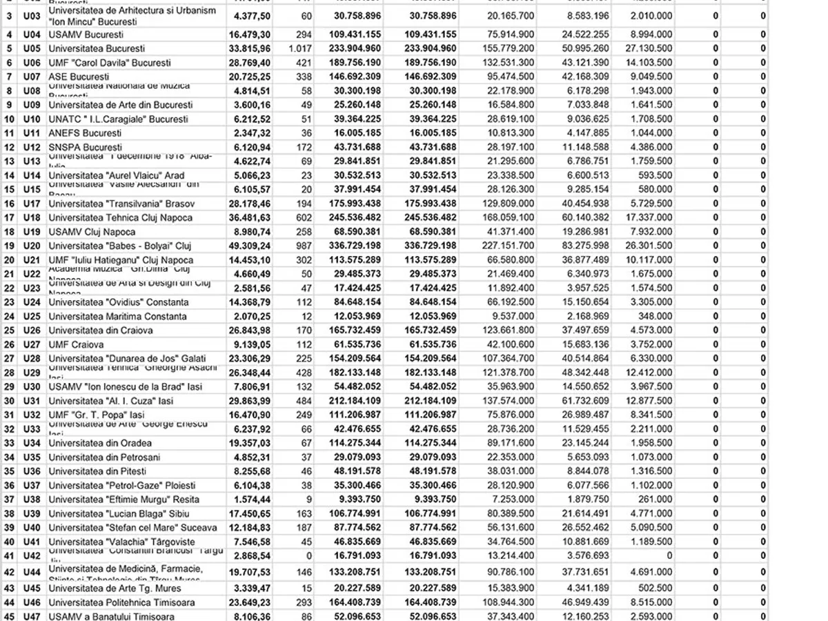 Cele mai bogate universități de stat din România