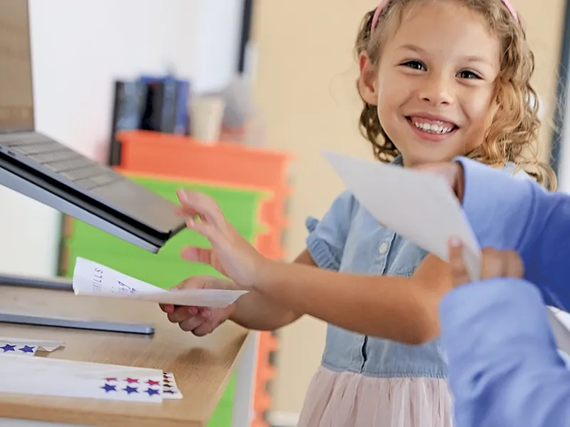 Odată intrat, devine mai clar că această școală este unică. La grădiniță, elevii își arată entuziasmul în timp ce Sarah Schipper, în vârstă de 6 ani, colaborează cu colegii pentru a rezolva un joc de logică. Elevii deduc calea corectă sărind pe puncte colorate pentru a-și găsi drumul prin șase rânduri multicolore. Zâmbete largi și muzică pop antrenantă domină camera plină de viață în timp ce Sarah și colegii ei se încurajează reciproc.