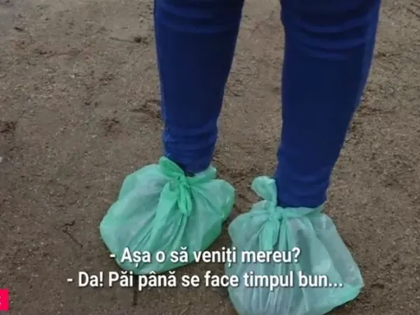 Copiii din comuna Berceni merg cu ghetele înfășurate în pungi la școală din cauza noroiului