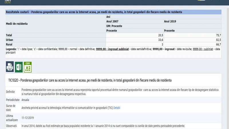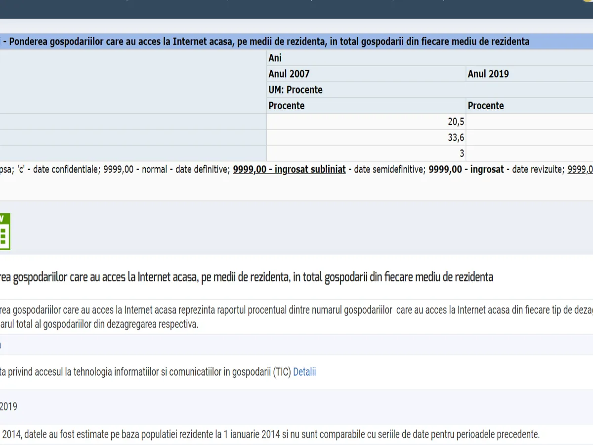 Ponderea gospodariilor care au acces la Internet acasa, pe medii de rezidenta, in total gospodarii din fiecare mediu de rezidenta este următoarea: