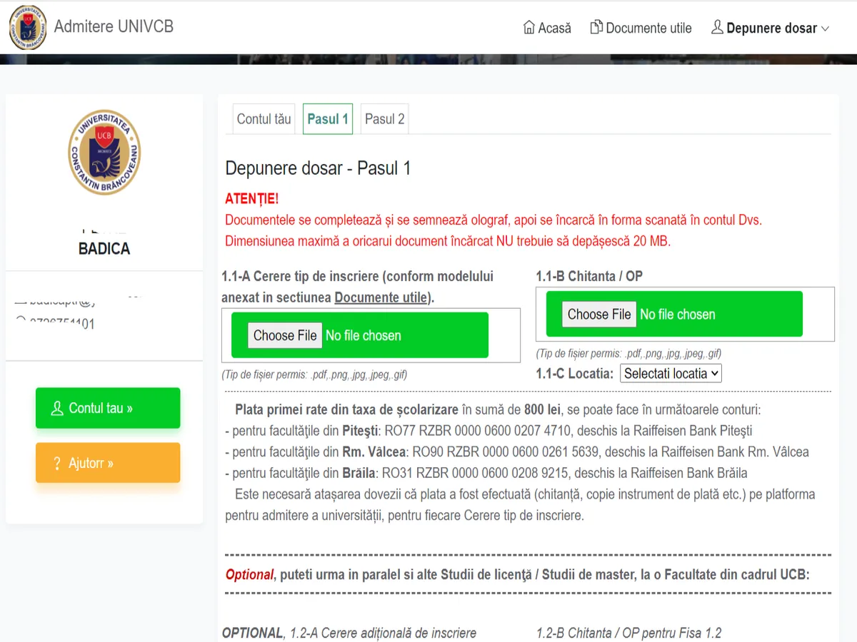 Primul pas se constituie din depunerea a două documente: o cerere tip de înscrie și achitarea unei taxe online. Apoi, veți scrie ce studii de licență sau de master în funcție buget doriți să urmați.