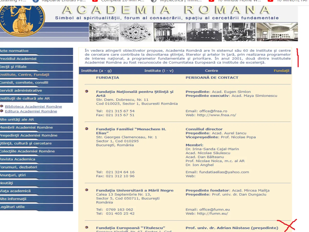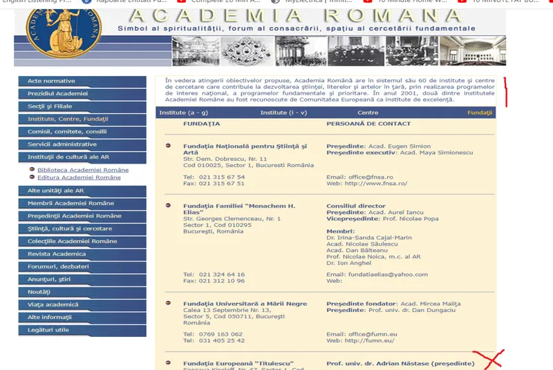 După cum se vede din facsimilul de mai jos, Fundația Europeană Titulescu, condusă de președintele Adrian Năstase, face parte din „institutele și centre de cercetare” alese de Academia Română să „contribuie la dezvoltarea ştiinţei, literelor şi artelor”.