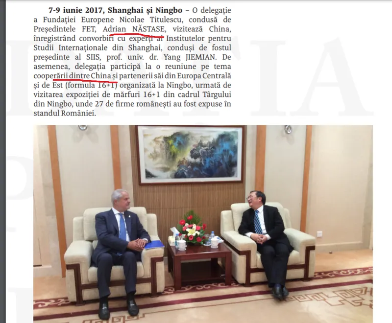 „7-9 iunie 2017, Shanghai și Ningbo, o delegație a Fundației Europene Nicolae Titulescu, condusă de Președintele FET, Adrian Năstase, vizitează China, înregistrând convorbiri cu experți ai Institutelor pentru Studii Internaționale din Shanghia conduși de fostul președinte al SIIS prof. univ. dr. Yang Jieman”.