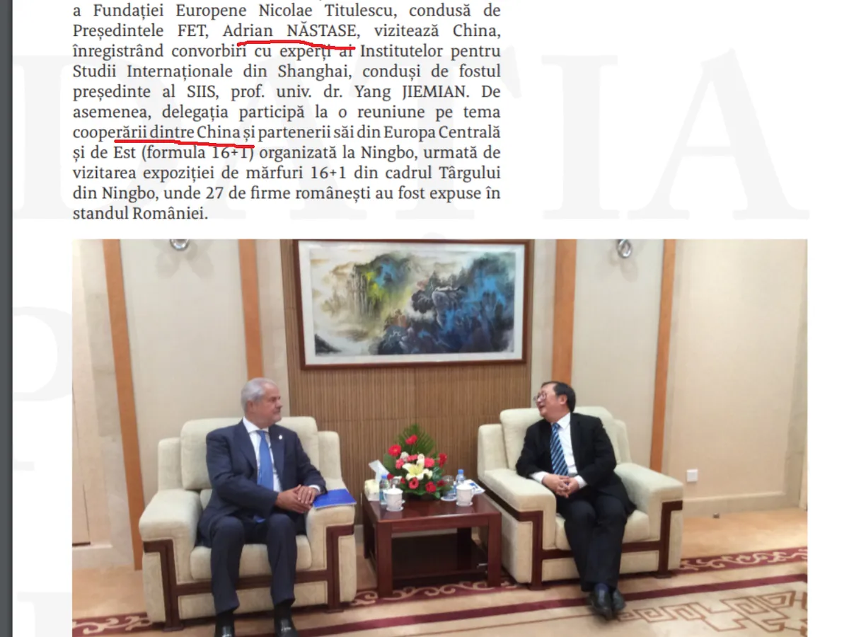 Ca președinte al Fundației Europene Titulescu, fostul premier Adrian Năstase, condamnat în două dosare, face vizite în China și Rusia. La București, îl invită pe ambasadorul Rusiei să modereze dezbateri. Academia Română crede că, în acest fel, este promovat „interesul național”.