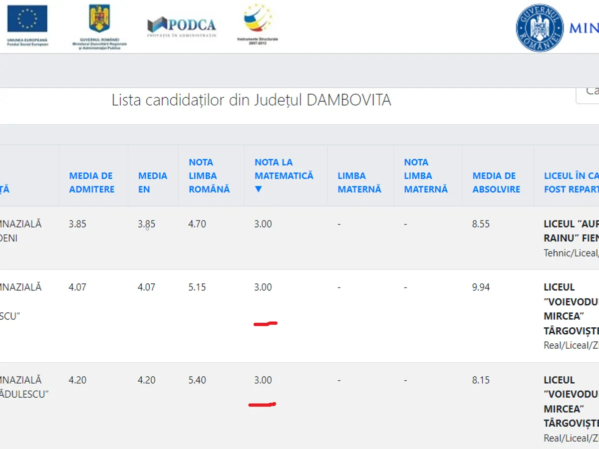 Nota 3.00 la matematică au luat doi elevi care au fost repartizați la Liceul Voievodul Mircea din Târgoviște.