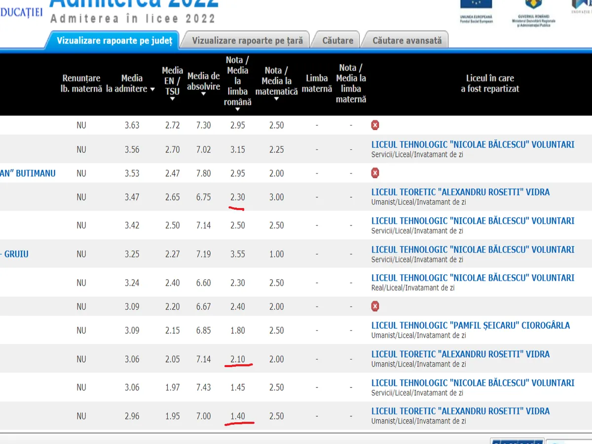 2. Există licee foarte slabe și puțin căutate care, pentru a-și umple locurile, acceptă elevi cu medii/note mici.