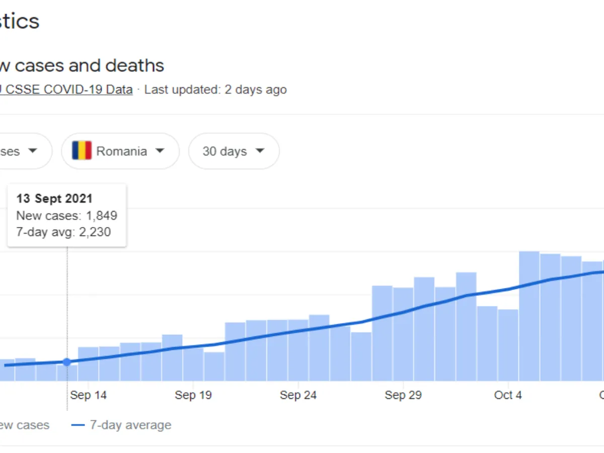 După mai puțin de o lună de școală avem peste 15.000 de infectări zilnic (vezi graficul de mai jos).