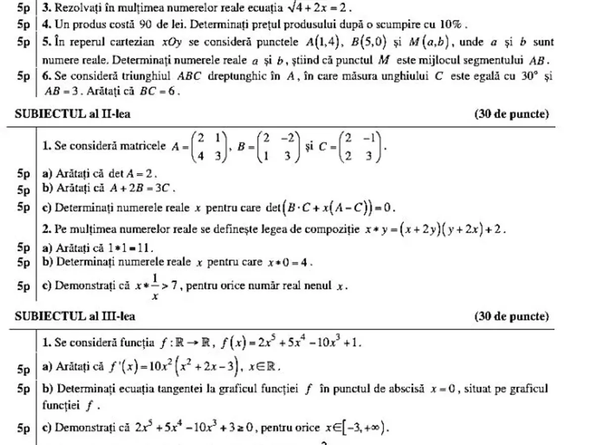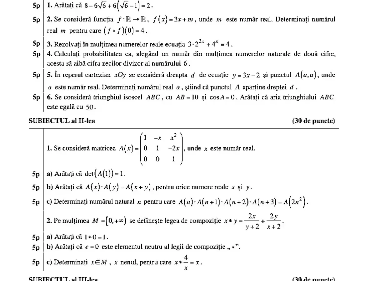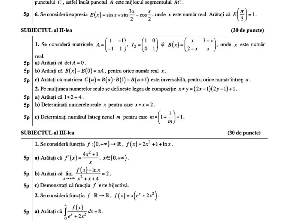 DOCUMENT Subiectele la Bacalaureat: profil real mate-info, tehnologic și științele naturii