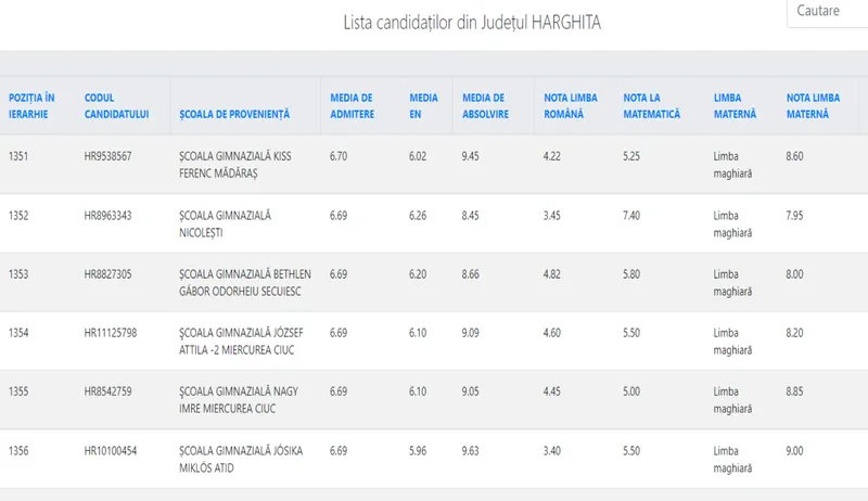 Media de absolvire V – VIII: 8,27 Notă la limba maternă: 7,5 Notă la limba română: 3,3