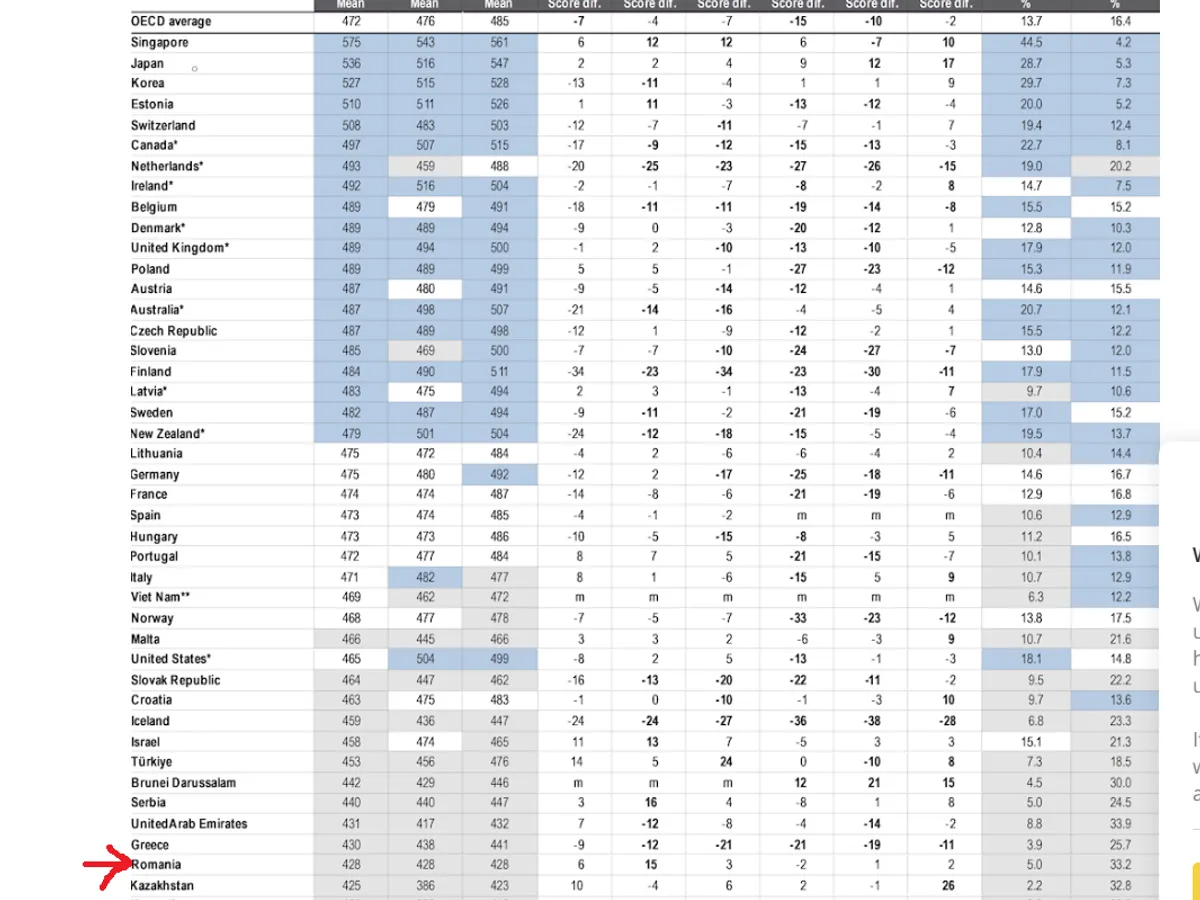 În 2018, România înregistra 428 de puncte la citire, 430 la matematică și 428 la științe.