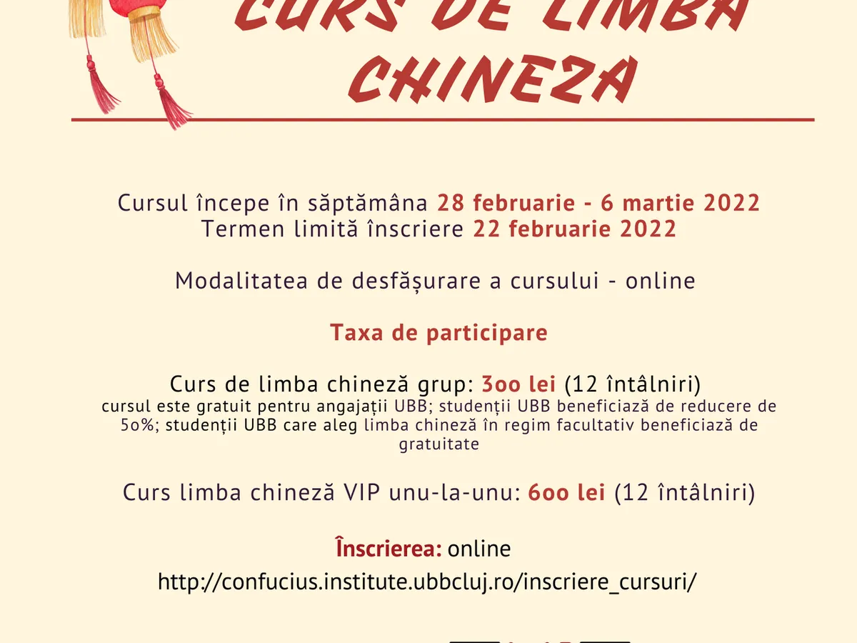 Reamintim faptul că în România există patru Institute Confucius deschise la Universitatea Babeș-Bolyai din Cluj, Universitatea București, Universitatea Transilvania din Brașov și Universitatea „Lucian Blaga“ din Sibiu.