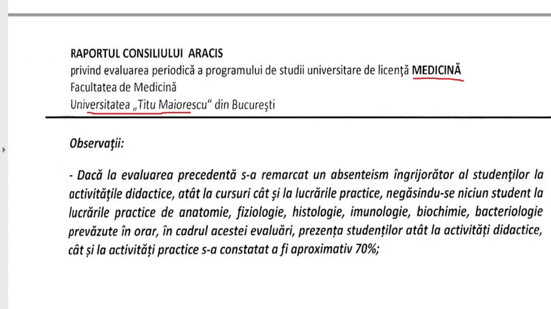 Articolul atrăgea atenția că, la Facultatea de medicină din cadrul Universității Titu Maiorescu, au existat șase seminarii la care nu mergea niciun student. Un aspect pe care îl consideram extrem de grav, deoarece pentru medicină e nevoie de foarte multă practică.
