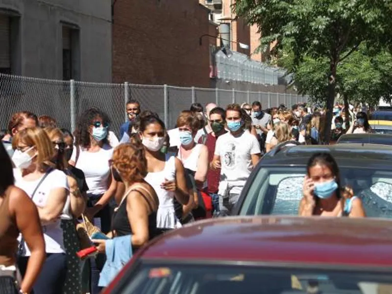 Mii de cadre didactice au format cozi uriașe în Madrid, ca să facă gratuit testul COVID. Testarea trebuie făcută până luni, iar oamenii sunt furioși că au fost anunțați cu doar câteva ore înainte.