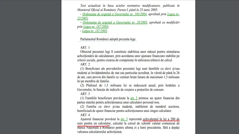 Atunci a apărut Legea Nr. 269 din 16 iunie 2004 privind acordarea unui ajutor financiar în vederea stimulării achiziționării de calculatoare.