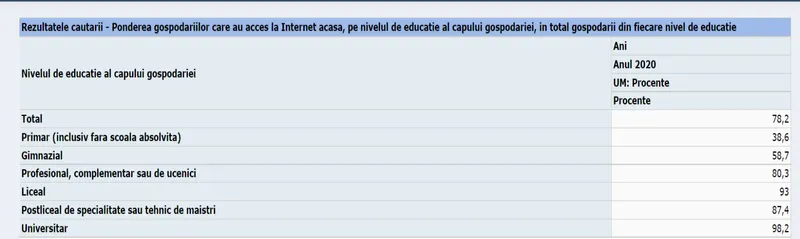 Cifrele de la Institutul Național de Statistică arată că, la începutul pandemiei (primăvara lui 2020) un procent de 78% dintre gospodării nu aveau acces la Internet. Dintre acestea: