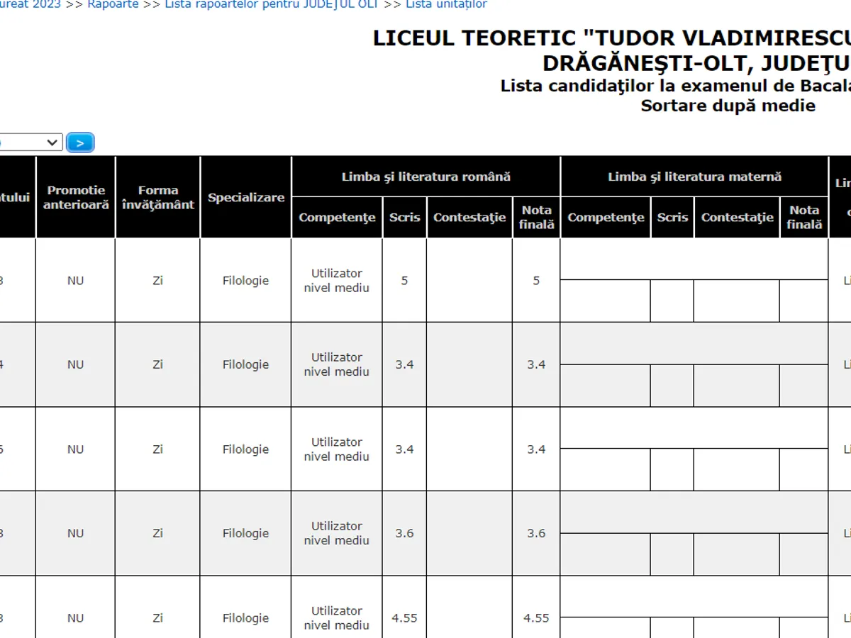 Elevi de la clasele de filologie au luat note de 2 și 3 la limba română la Bacalaureat, ceea ce arată că profesorii au fost extrem de îngăduitori și i-au trecut clasa.