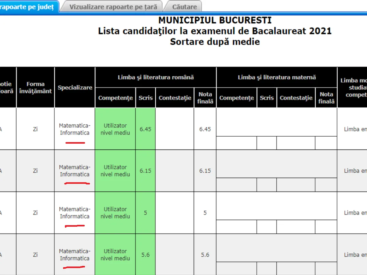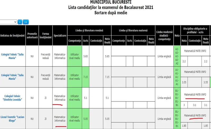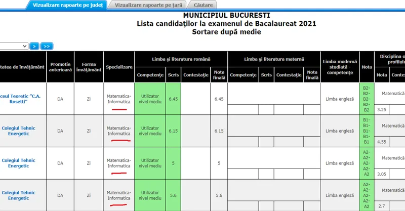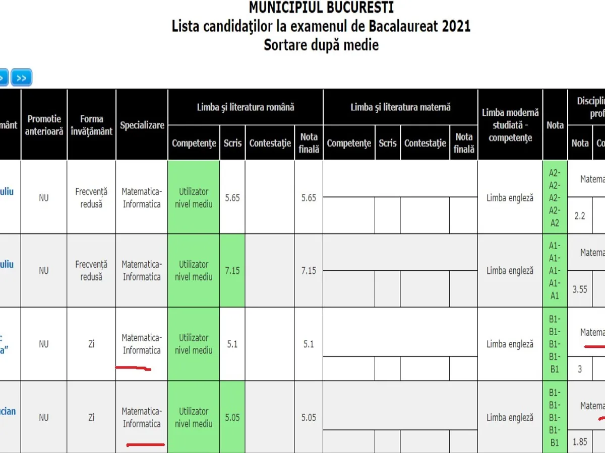 Un elev care a terminat liceul anii trecuți a obținut 3,25 la matematică, studiind la Liceul Teoretic Rosetti. Doi elevi de la Liceul Energetic au obținut la matematică note de 2,7, respectiv 3.