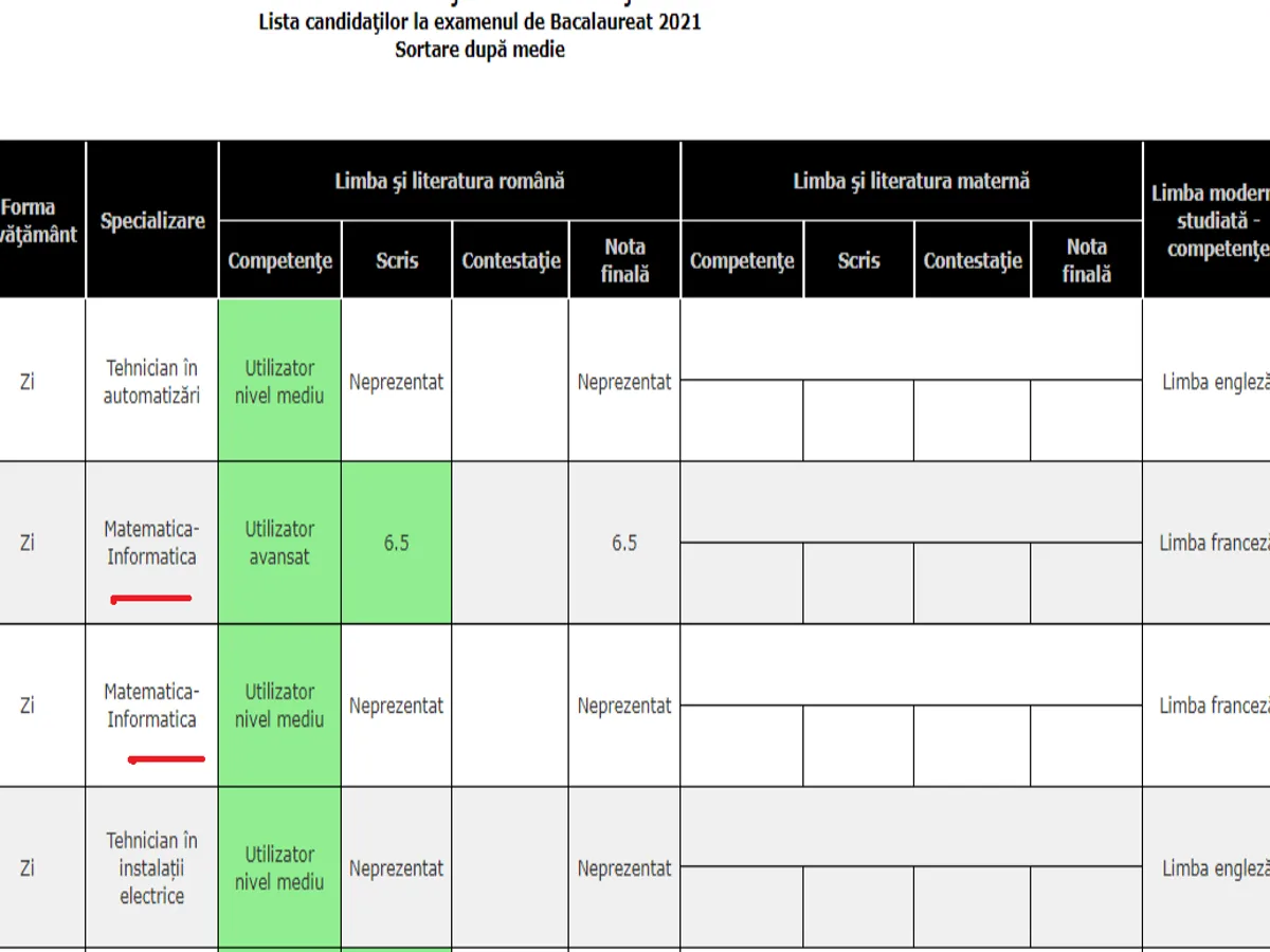 Newsweek România a descoperit numeroase cazuri de elevi care au terminat specializarea matematică-fizică/informatică și, după 4 ani de studiu, au obținut note mult sub 5 la examenul de matematică de la Bacalaureat. Un absolvent al Colegiului Tehnic „Dimitri Leonida” din București, la zi, a luat nota 3,1 la examenul de matematică. Un altul de la liceul „Lucian Blaga” a obținut nota 1,85. Amândoi au fost la clase de mate-fizică.
