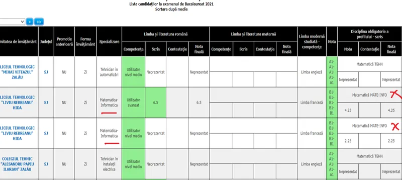 Un alt licean, care a studiat la clasa de mate-fizică la un colegiu din Alexandria, a obținut nota 2,5 la matematică.