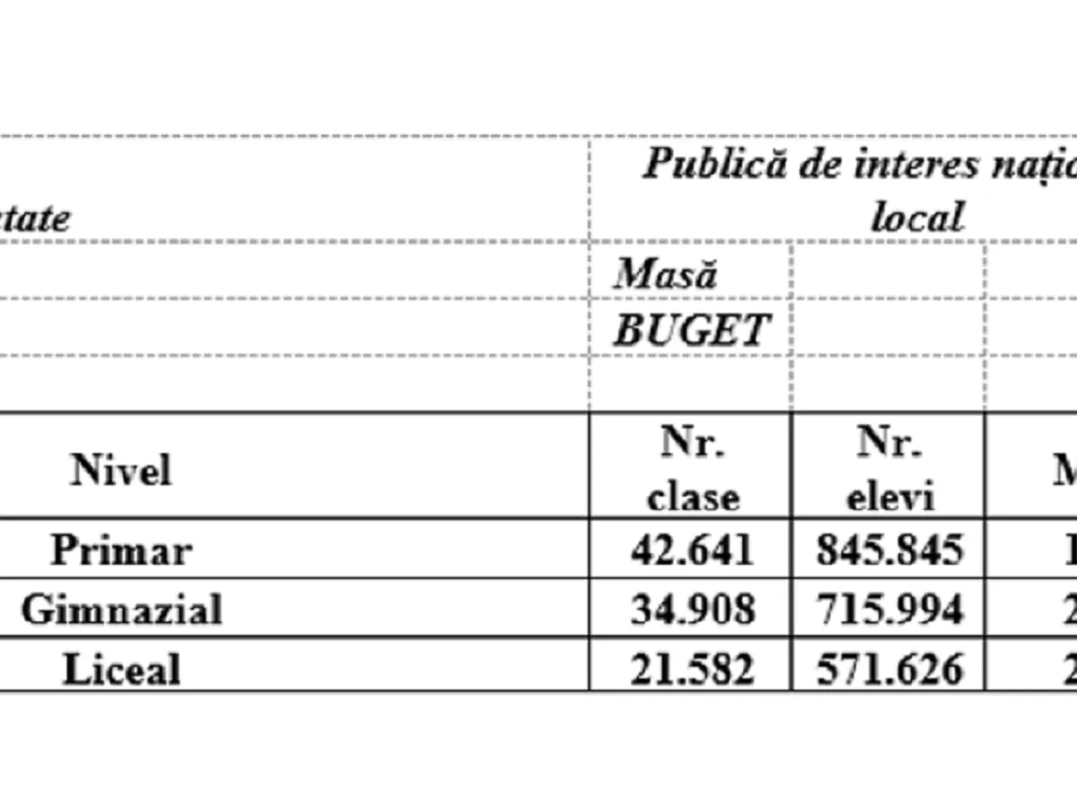 Învățământul liceal: În România sunt 21.582 de clase și 571.626 de elevi. Numărul mediu de elevi într-o clasă este în învățământ liceal de 26,49, potrivit cifrelor obținute de Newsweek România.