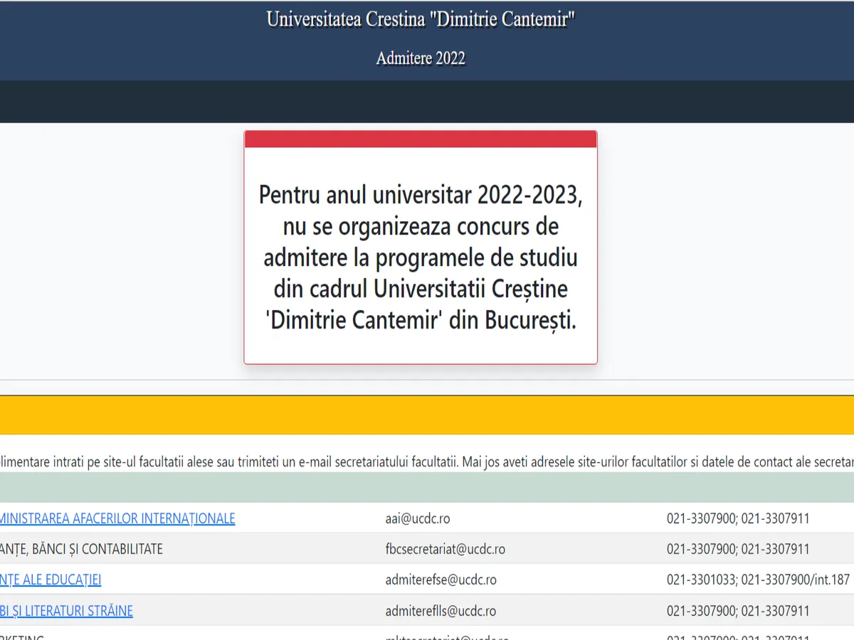 „Pentru anul universitar 2022-2023, nu se organizeaza concurs de admitere la programele de studiu din cadrul Universitatii Creștine 'Dimitrie Cantemir' din București”, scrie mare la capitolul „Admitere” de pe site-ul Universității Creștine Dimitrie Cantemir.