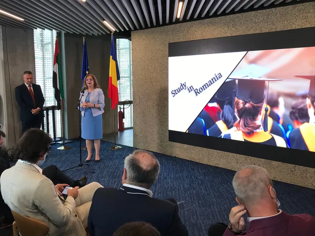 Pavilionul României la Expo 2020 Dubai a găzduit luni Seminarul "Study in Romania", eveniment organizat de Consiliul Naţional al Rectorilor pentru promovarea ofertei educaţionale naţionale adresate studenţilor, masteranzilor şi doctoranzilor din străinătate.