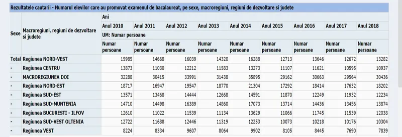 Comparația s-a făcut cu anul 2018 (ultimul pentru care INS prezintă statistici regionale). În 2018 au luat bacalaureatul un număr de 86.000 de elevi asemănător cu anul 2021.