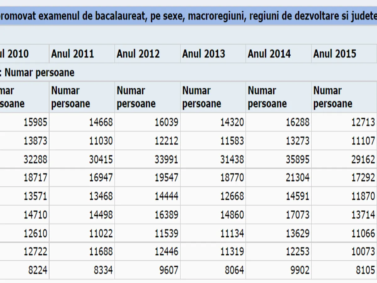 În 2010, au luat bacalaureatul 110.000 de elevi, iar un an mai târziu 101.000. În 2012, un număr de 112.000 elevi au luat bacalaureatul, iar în 2013 cu 6.000 mai mulți. Apoi, cu o singură excepție (anul 2015), numărul elevilor care au promovat examenul de bacalaureat a fost sub 100.000 de elevi.