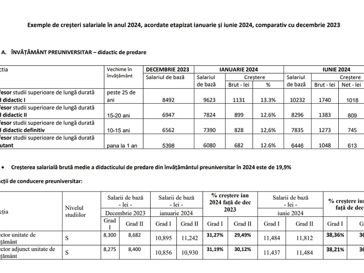 Citește și: Salariile profesorilor vor crește cu 20%. Un profesor cu 25 de ani vechime va lua 6.000 de lei