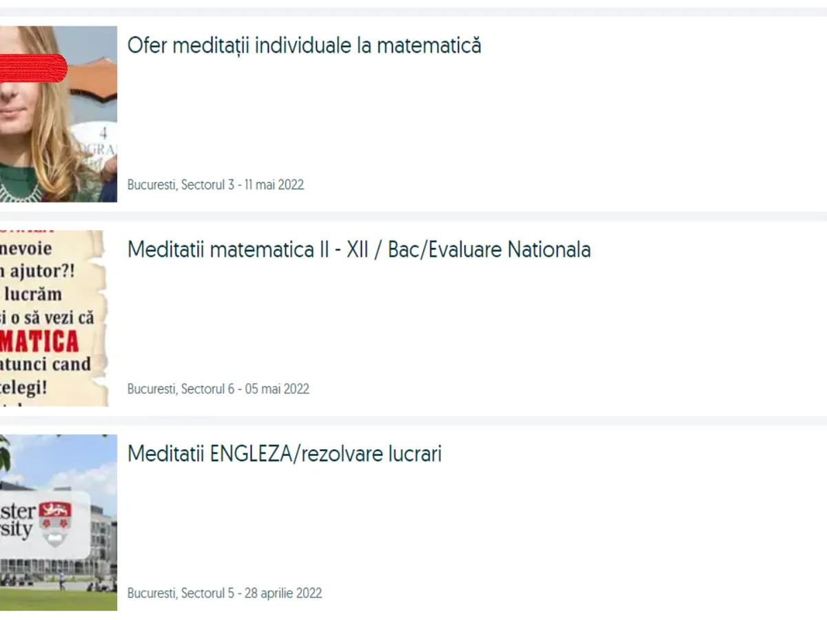 Pe anunturi-meditatii.ro găsești o delimitare pe categorii de materii, dar și pe județe.