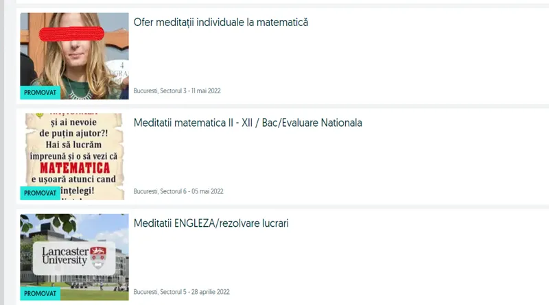 Concurența pe piața meditațiilor este atât de acerbă, încât profesorii plătesc pentru a-și promova anunțurile. Pe marile siteuri de anunțuri, promovarea meditațiilor se face pe bani. Meditații la engleză, germană sau matematică sunt promovate de pe portalul olx. Promovarea anunțurilor se face contra cost.