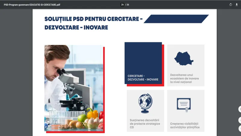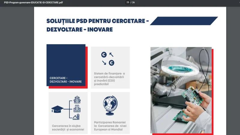 Programul de guvernare PSD 2021 – 2024 în cercetare : 3 planșe, 3 poze, 6 promisiuni, 40 de cuvinte