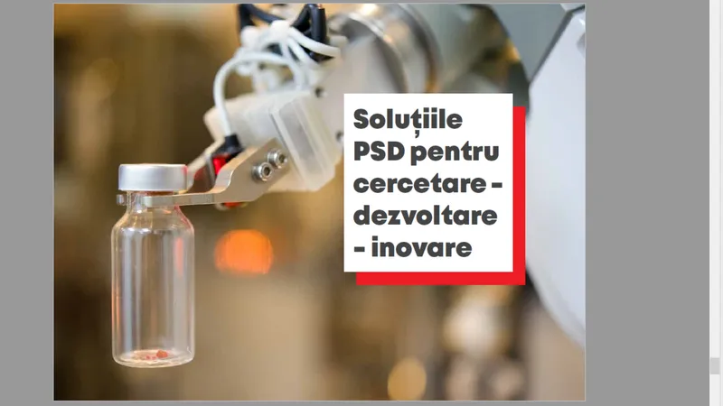 În prima avem o imagine cu un braț de robot și titlul capitolului: „Soluțiile PSD pentru cercetare-devoltare-inovare”