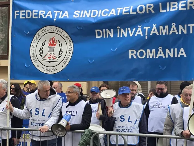 Federaţia Sindicatelor Libere din Învăţământ, Federaţia Sindicatelor din Educaţie Spiru Haret şi Federaţia Naţională Sindicală Alma Mater organizează, miercuri, un protest la Palatul Cotroceni.