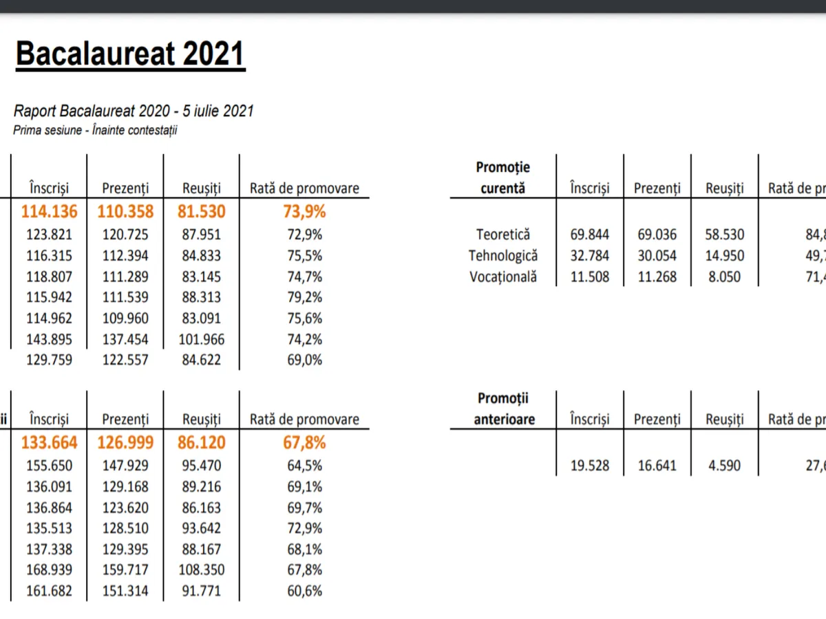 Citește și: 67% dintre elevi au luat examenul de bacalaureat. Rata de succes este cu 5% peste cea din 2020