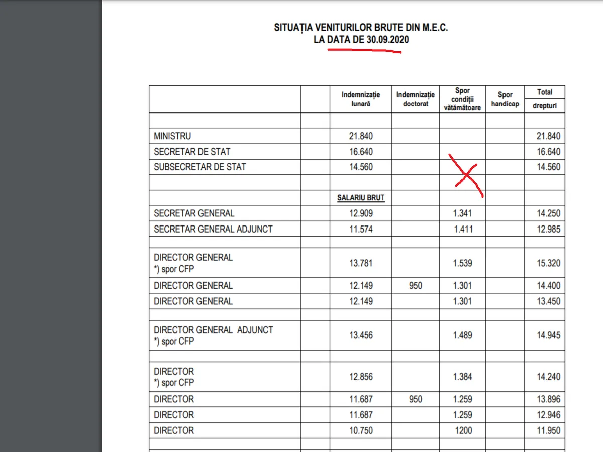Pe baza acestor buletine, cuantumul sporului de condiții de muncă plătit, lunar, tuturor salariaților din aparatul propriu al ministerului Educaței este de 219.064 lei brut”.