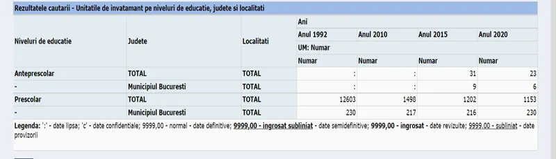 Cifrele de la Institutul Național de Statistică sunt edificatoare. La nivelul României, în anul 1992 existau peste 12.000 de grădinițe și creșe de stat. În urmă cu 10 ani, numărul acestor unități de învățământ era de 1.500. În numai 10 ani a scăzut cu 350 ajungând la puțin peste 1.150.