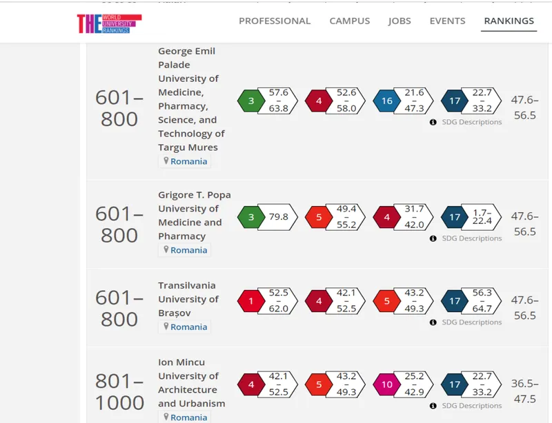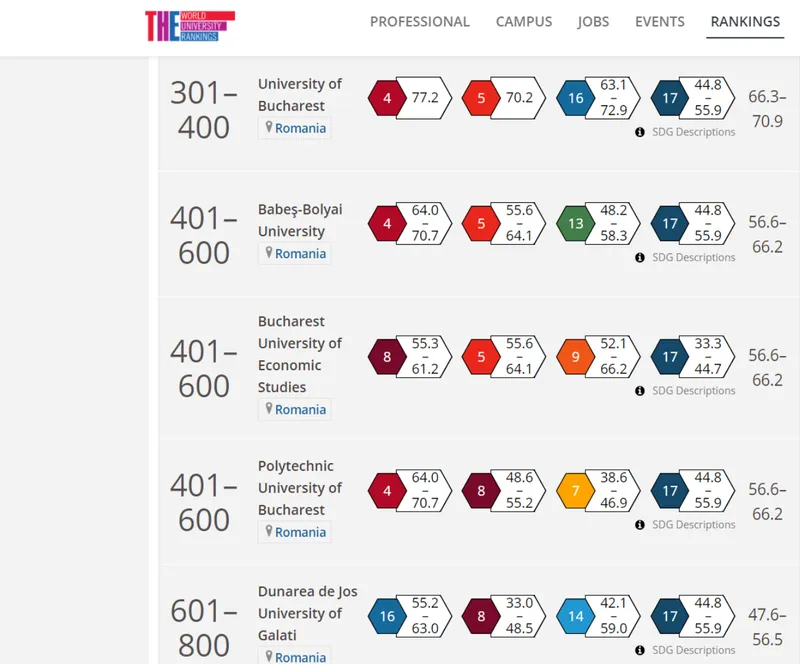 România, după Ungaria în Times Higher Education Impact Rankings 2021