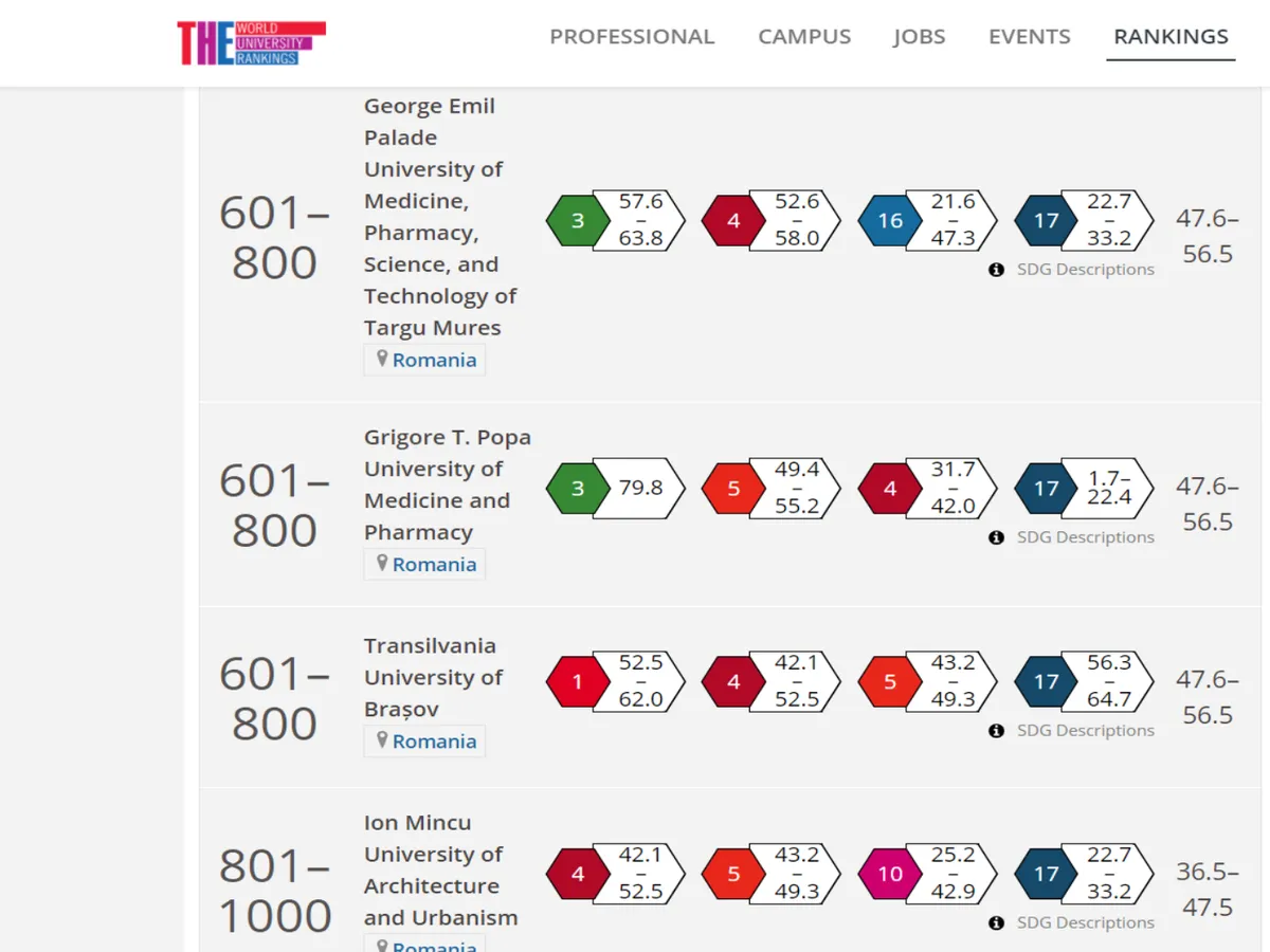 Între 801 și 1000 sunt clasate Universitatea de Arhitectură Ion Mincu și Universitatea de Medicină și Farmacie din Cluj Napoca.
