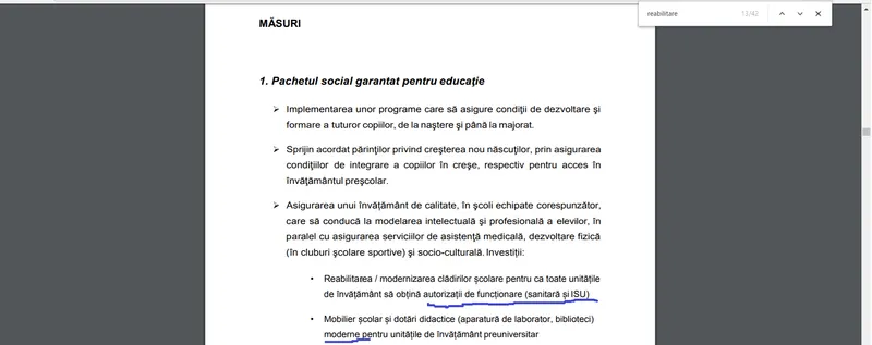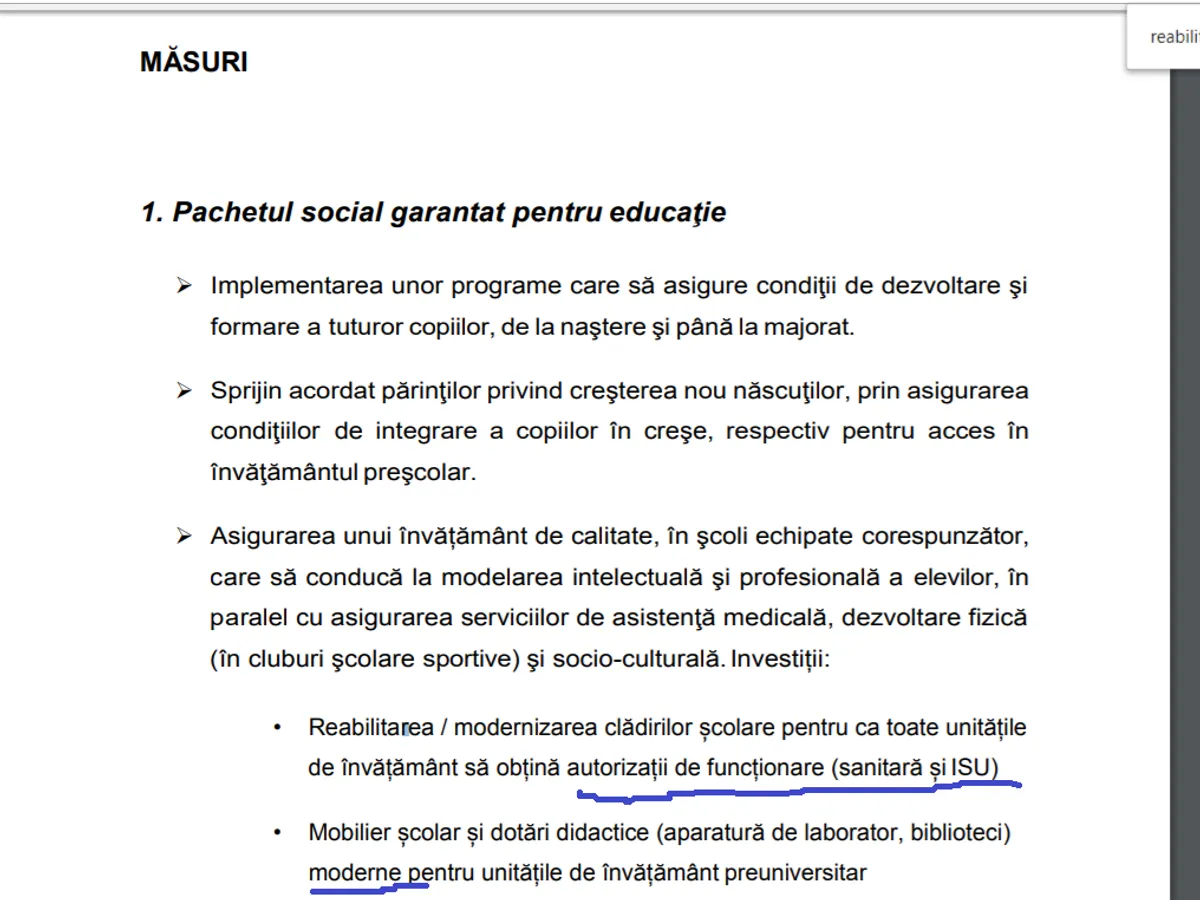 • Reabilitarea / modernizarea clădirilor școlare pentru ca toate unitățile de învățământ să obțină autorizații de funcționare (sanitară și ISU)