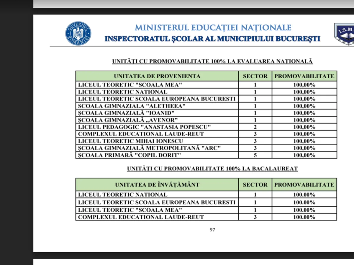 Inspectoratul Școlar al Municipiului București a publicat lista liceelor cu promovabilitate 100% la Evaluarea Națională și la bacalaureat.