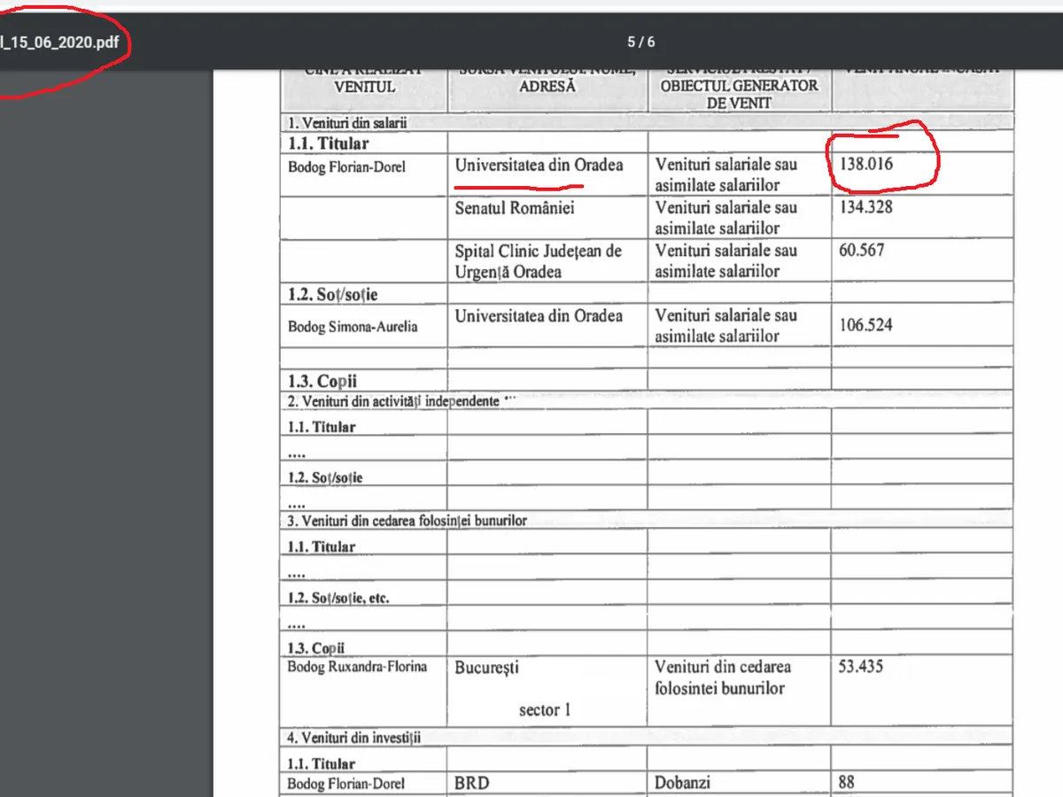 În 2018, a câștigat 21.000 de euro de la Universitatea Oradea și 26.300 de euro ca senator.