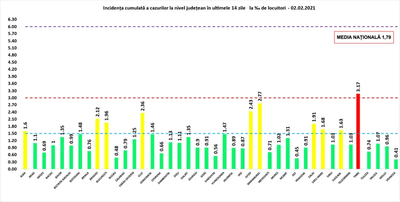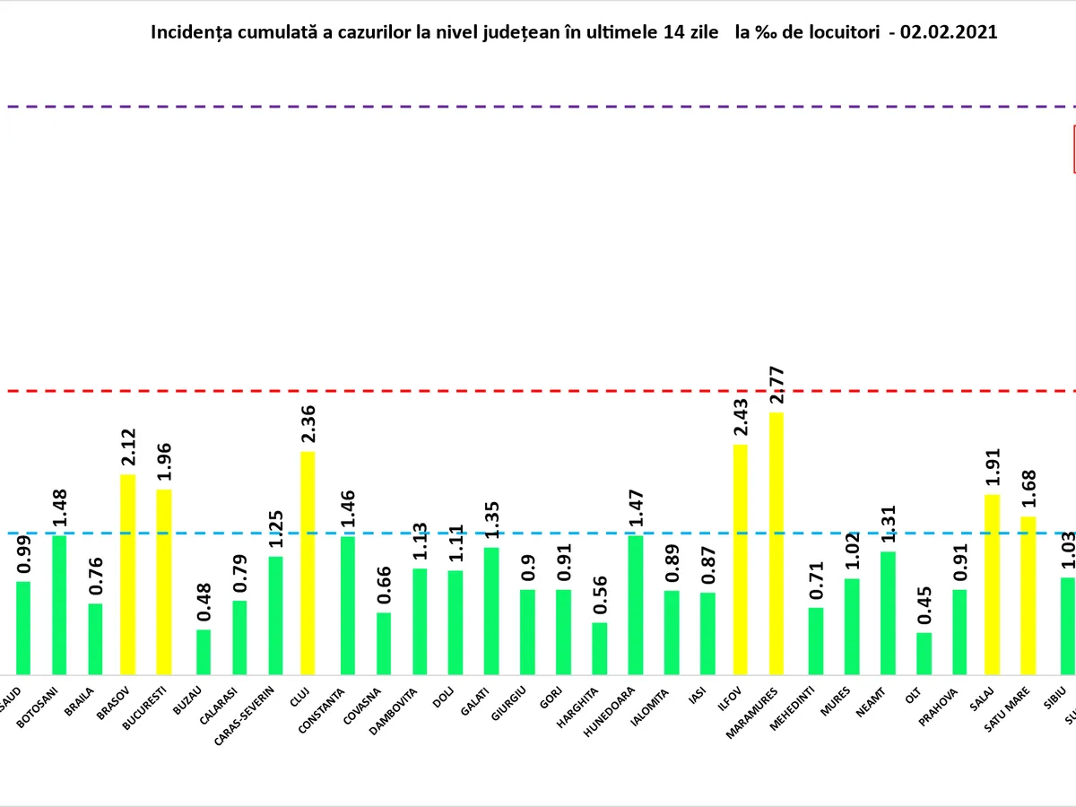 Care este situația infectărilor, azi, 2 februarie: 23 de județe și Bucureștiul în scenariul galben. Timiș în scenariul roșu. 17 județe în scenariul verde.