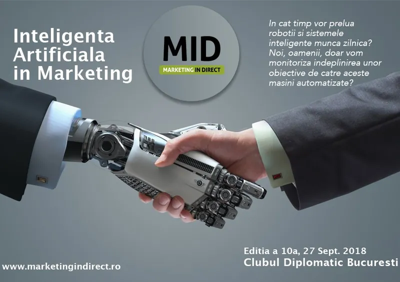 Conferinţa „Marketing în Direct”, ajunsă la ediţia a 10a, dezbate tema “Inteligenţa Artificială în Marketing” pe 27 Sept, la Clubul Diplomatic Bucureşti, prin vocile specialiştilor: Andreea Moisa (Managing Director & Fondator Beans United), Cristian Ignat (Chief Canopyst Canopy), Doina Vîlceanu (Business Development Manager Content Speed), Dragoş Smeu (General Manager și Trainer la Mavericks), Horia Neagu (Owner & Digital Marketing Consultant la Napoleon.Digital), Ioana Frîncu (Chief Operations Officer Under Development Office), Iulian Ghişoiu (General Manager TargetWeb), Oana Raluca Ghilea (Co-Owner Perceptum), Patricia Bertea (Managing Partner & Co-fondator Brandweb și CozoApp), Mihai Vînatoru (Managing Partner & Head of SEO Compania Digital Workforce).