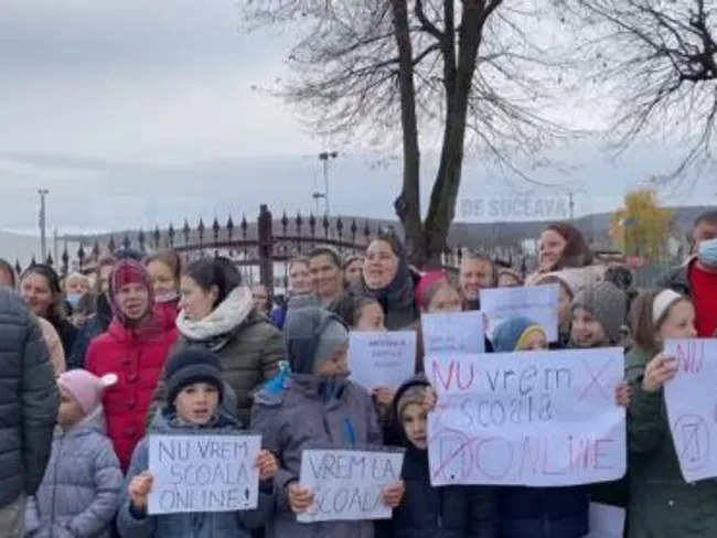 VIDEO Protest al elevilor și profesorilor dintr-o școală din Suceava care nu vor învățământ online