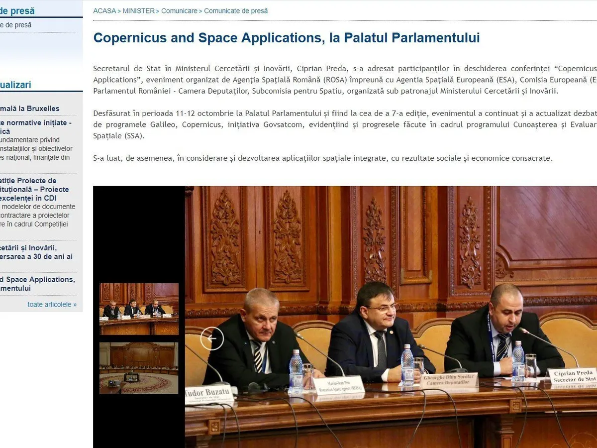 Ciprian Preda s-a adresat participanților în deschiderea conferinței “Copernicus and Space Applications. Și tot Secretarul de stat în Ministerul Cercetării și Inovării, Ciprian Preda, a participat la cea de a 93-a întâlnire a „NuPECC - The Nuclear Physics European Collaboration Committee”.
