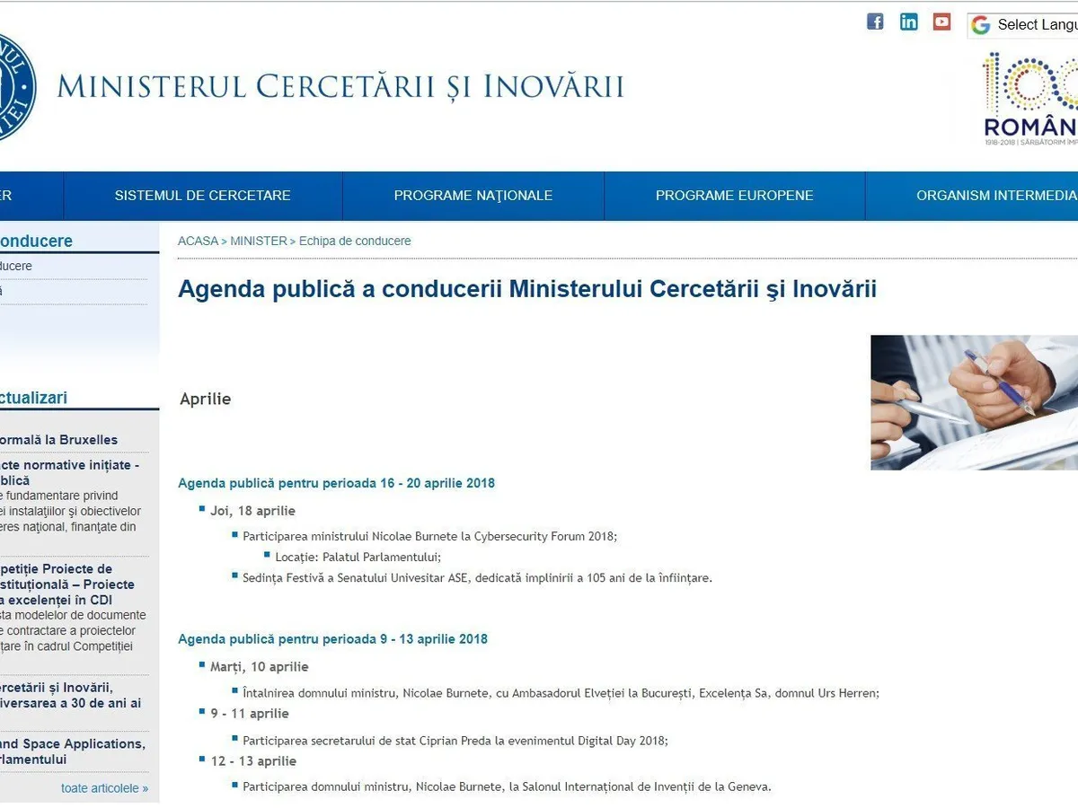 Secretarii de stat Lucian Georgescu și Ciprian Preda au participat, la Bruxelles, la reuniunea Consiliului Competitivitate. Pe de altă parte, agenda ministrului Cercetării se oprește la data de 20 aprilie, acum șase luni.